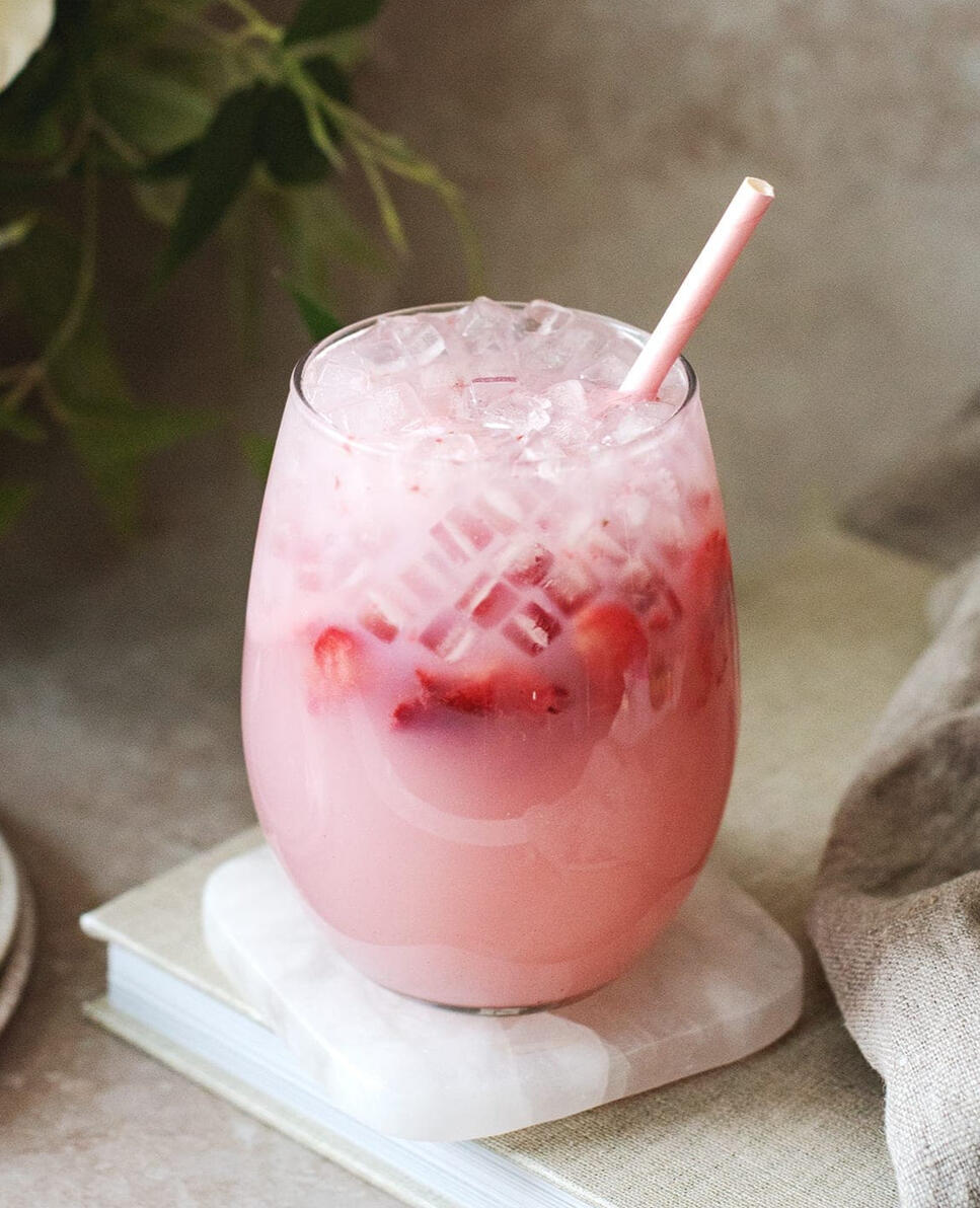 Far-eastern strawberry soju, liquid yoghurt and lemon-lime soda mingle with cut strawberries to create a drink as sweet as a spring morning.