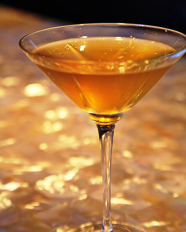 A rich blend of mead, apple-pear brandy, cinnamon infused honey and lemonade, served heated and sprinkled with edible gold flakes.
