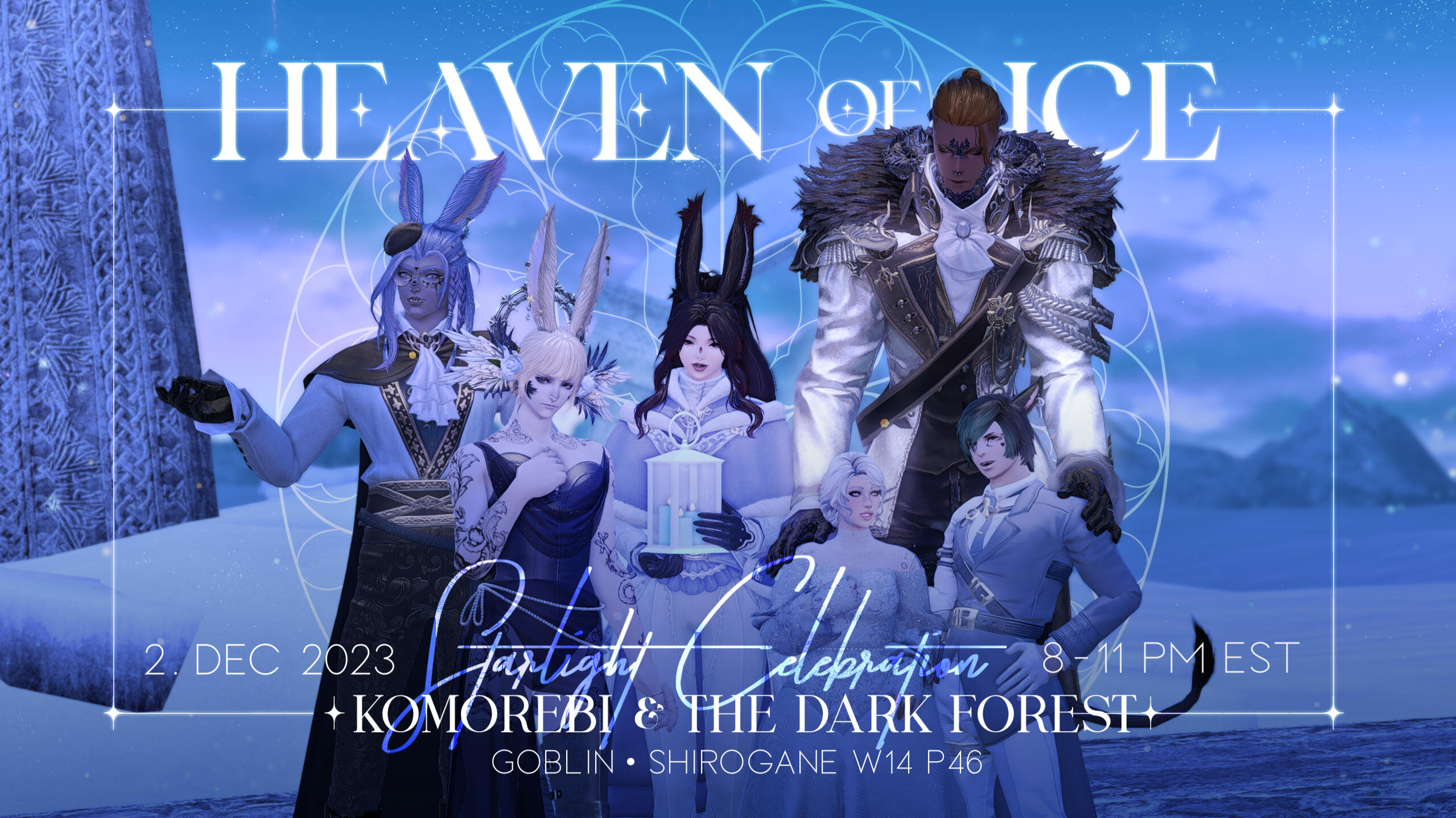 For the beginning of this season, we at Komorebi have the utmost pleasure to announce our first collaboration with our long-standing partner venue The Dark Forest, an (admittedly premature) Starlight celebration themed "Heaven of Ice"! Celestial elegance, sparkling snowflakes, starry skies and grande ball luxury are order of the night on December 2nd. The event will be held with staff from both our venues in a special build at Goblin, Shirogane, W14 P46, with an exclusive seasonal menu.We look forward to seeing you there!