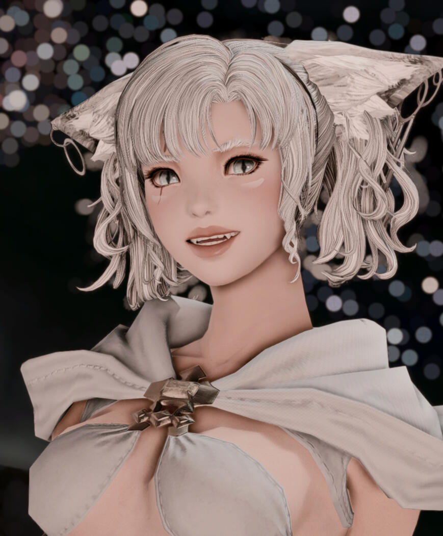 A bubbly and energetic little miqo'te without many cares in the world. She has an extra fluffy tail and wolflike ears. She can be a docile kitten, or a ferocious wolf when riled up.